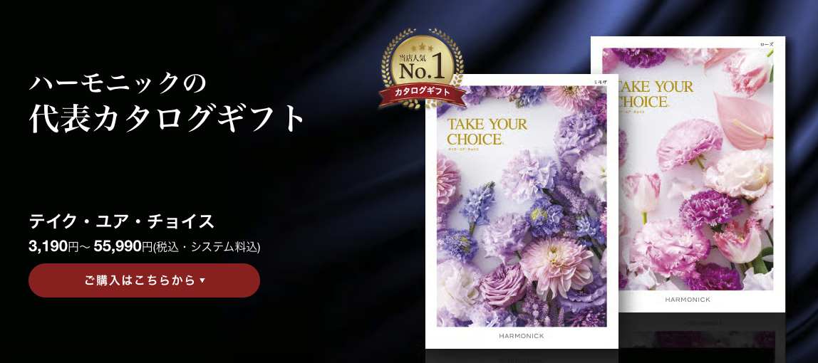 ハーモニックは、1946年創業の新潟県三条市に本社を置くカタログギフト専門会社です。年間約900万冊の販売実績があり、「凛」など多彩なシリーズを展開しています。