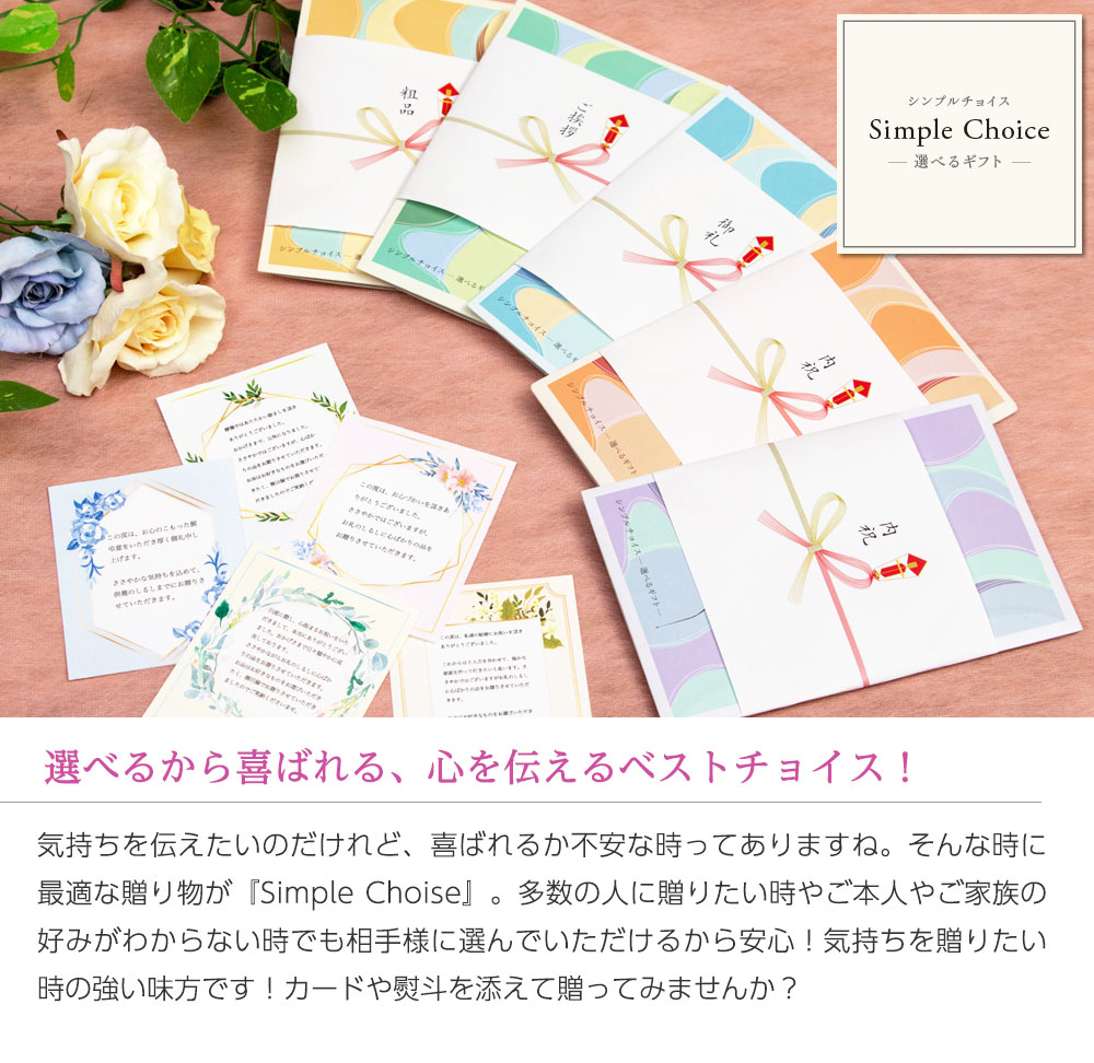 カタログギフトのように選ぶ自由度を保ちながらミスマッチを防げるため、気持ちをきちんと届けやすいのが特長です。